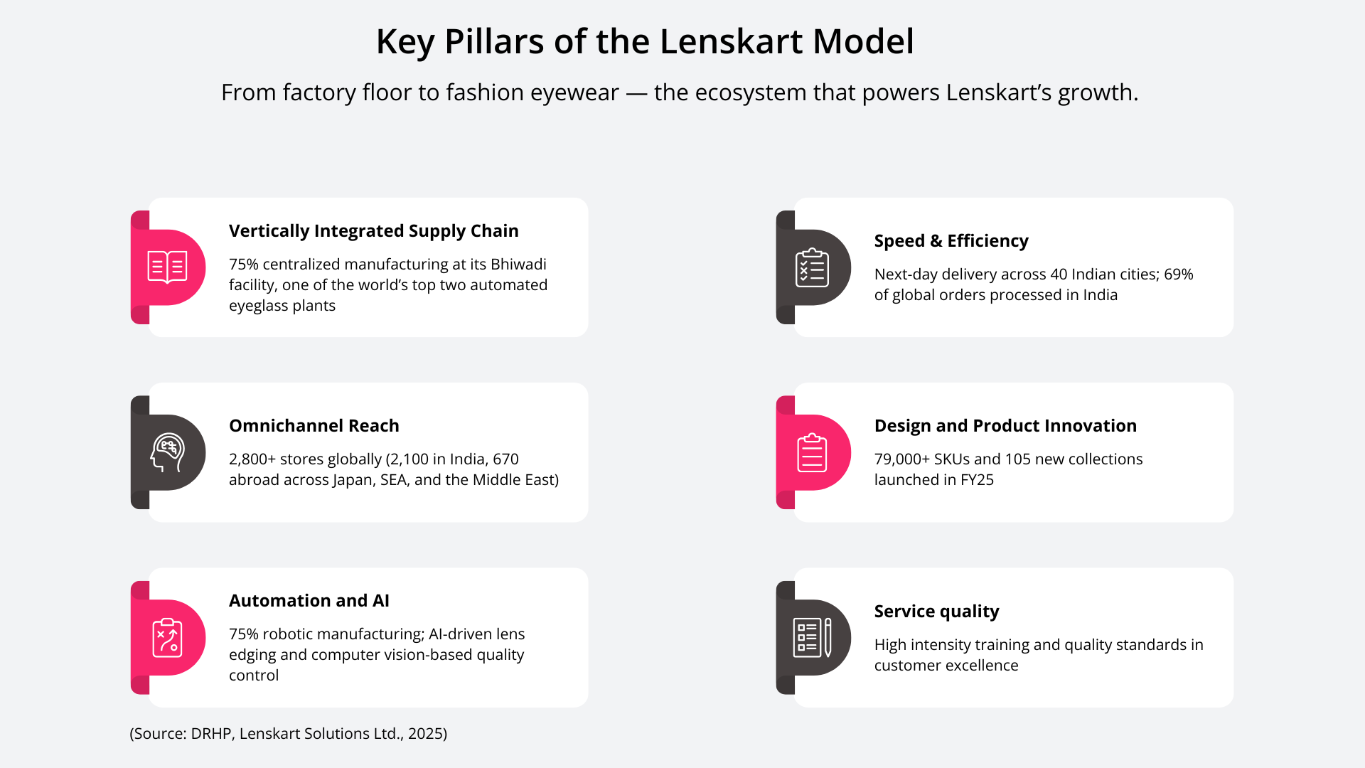This “manufacturer-to-consumer” model eliminates intermediaries, enabling Lenskart to offer fashionable, prescription eyewear at affordable prices with consistent quality.